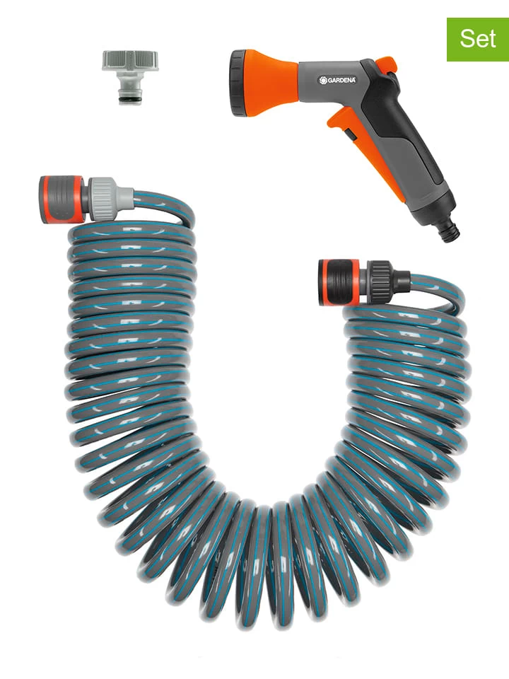 – 1 spiraaltuinslang met slanggedeelte en waterstop